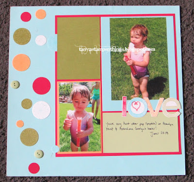 This is a very late post for today. I've been trying to catch up on books for my oldest daughter, so right now I have yet another Easter page for you. This one was all about the pretty DP, and some cute photos.