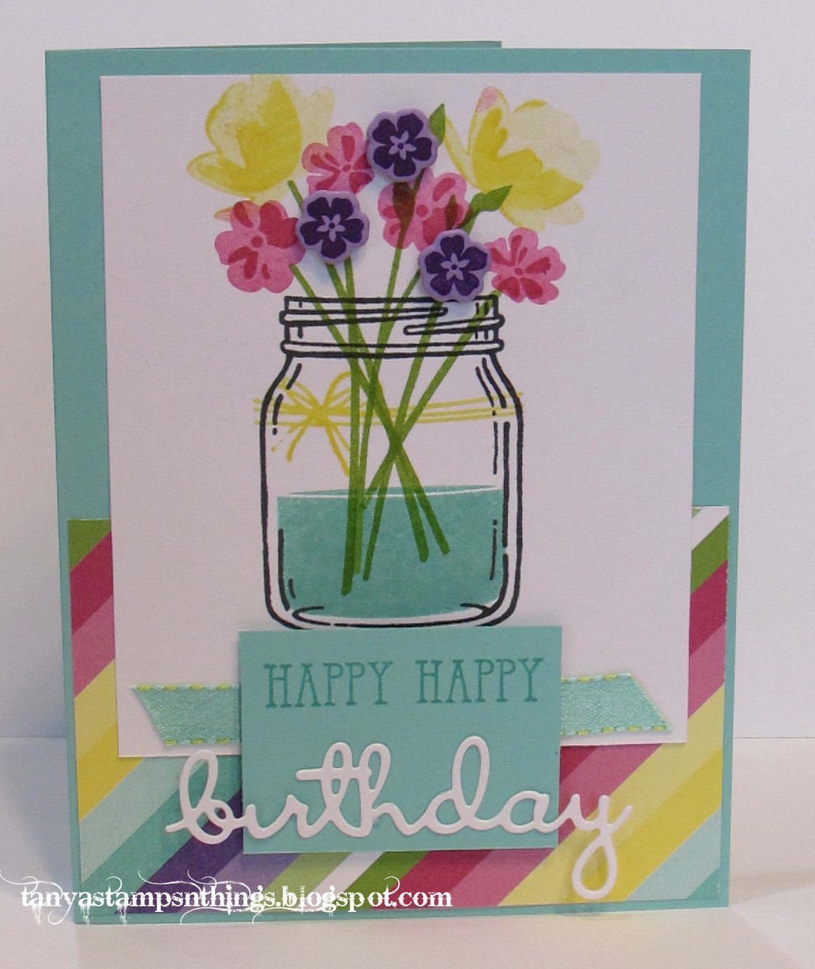 It's not the simplest card, but overall I like it. I don't love the way the jar and the greeting panel line up a little too well, but I'd already done all the stamping and everything before I realized that, so here it is anyway. And I'm pretty sure the recipient won't mind.